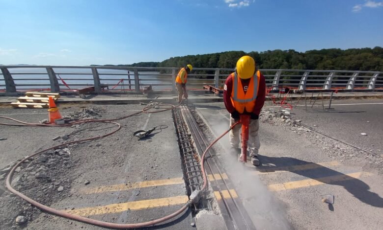 Leer más »También se armaron y colocaron guindolas-andamio en la parte exterior del puente, para intervenir la estructura desde ahí. • Ya…